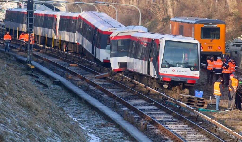 У вівторок ввечері в німецькому місті Гамбург сталася аварія з поїздом метро. Поїзд на станції Білштедт зійшов з рейок, коли врізався в опорний брус. Три вагони відійшли від рейок, а останній вагон врізався у відбійник. Рух між станціями було припинено, машиніста шокованого доставили до лікарні. Один з вагонів міг пошкодити зустрічний поїзд з 172 пасажирами. Пасажирів евакуювали через аварійні сходи і вивезли автобусами. Лінія залишалася закритою до кінця дня, причини аварії встановлюються.
